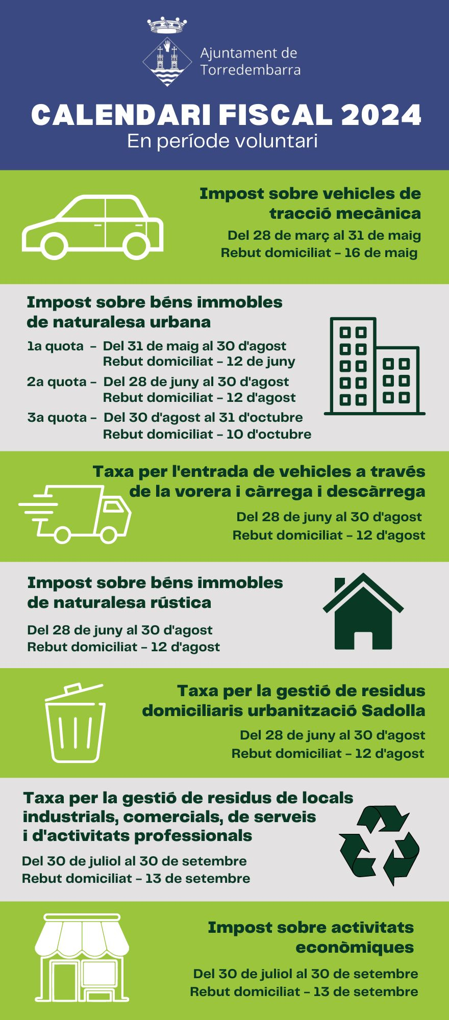 L’Ajuntament de Torredembarra ja compta amb el calendari fiscal del 2024, que tot seguit es detalla: