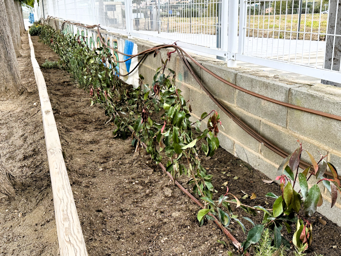 Escola Antoni Roig: Plantació de 4 jacarandes, 6 tipuanes, 120 fotínies i instal·lació d’un sistema de reg.