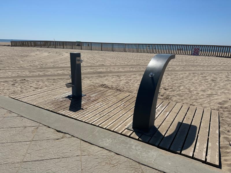 La zona de platja per a gossos, oberta de l’1 de juny al 30 de setembre, és un espai de 1.192,20 m² que es troba a la platja del Barri Marítim, davant de la plaça de les Remendadores i al costat de Cal Bofill. Disposa de tanca perimetral, cartelleria informativa, una font, una dutxa per a gossos i papereres específiques.